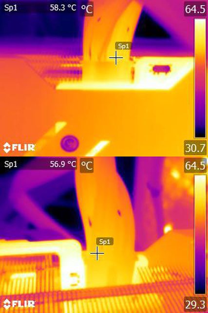 ▼執行FURMARK 30分鐘後,電源端插頭的紅外線熱影像圖(附註:安裝位置環境溫度會影