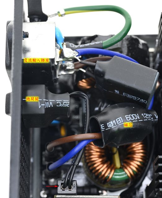 有包覆套管。總開關控制輔助電源電路ON/OFF,不直接控制交流輸入。磁芯/總開關/總開