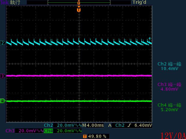 23.2mV/20.8mV/17.2mV;於純12V全負載輸出下12V/5V/3.3V各路低頻漣波分別為