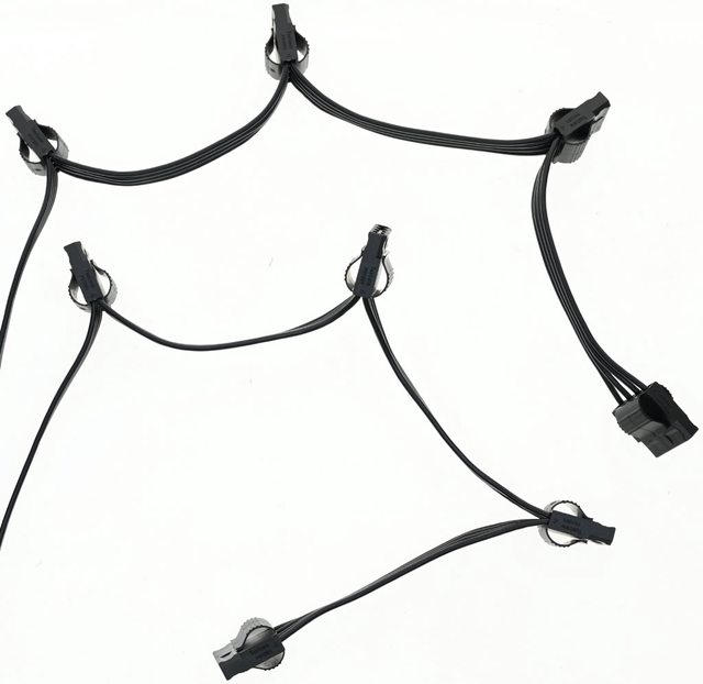 ▼4條SATA接頭黑色帶狀模組化線路,提供16個直角SATA接頭,至第一個接頭線路長度