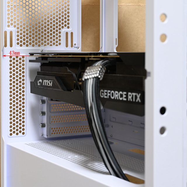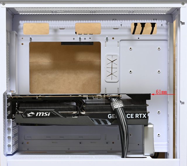 ▼安裝MSI GEFORCE RTX 4090 GAMING X TRIO(337×140×77mm)時,顯示卡頂端與機殼左