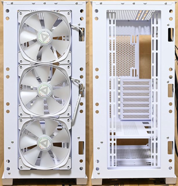 ●前方/頂部/後方/電源艙頂部可安裝最多9個120mm風扇,前方預裝3個白色款HP140