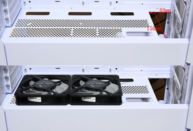 開口大小156×60mm,網狀通風口可安裝2個120mm風扇