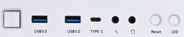 ▼位於頂部右前方的縱置式I/O埠、按鈕與指示燈,由前(圖左)至後(圖右)分別是電源按