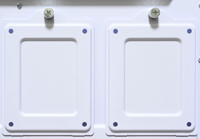 ●底板背面前方可安裝2個2.5吋SSD,底板背面右下方2個2.5吋固定架可安裝2個2.5吋SSD