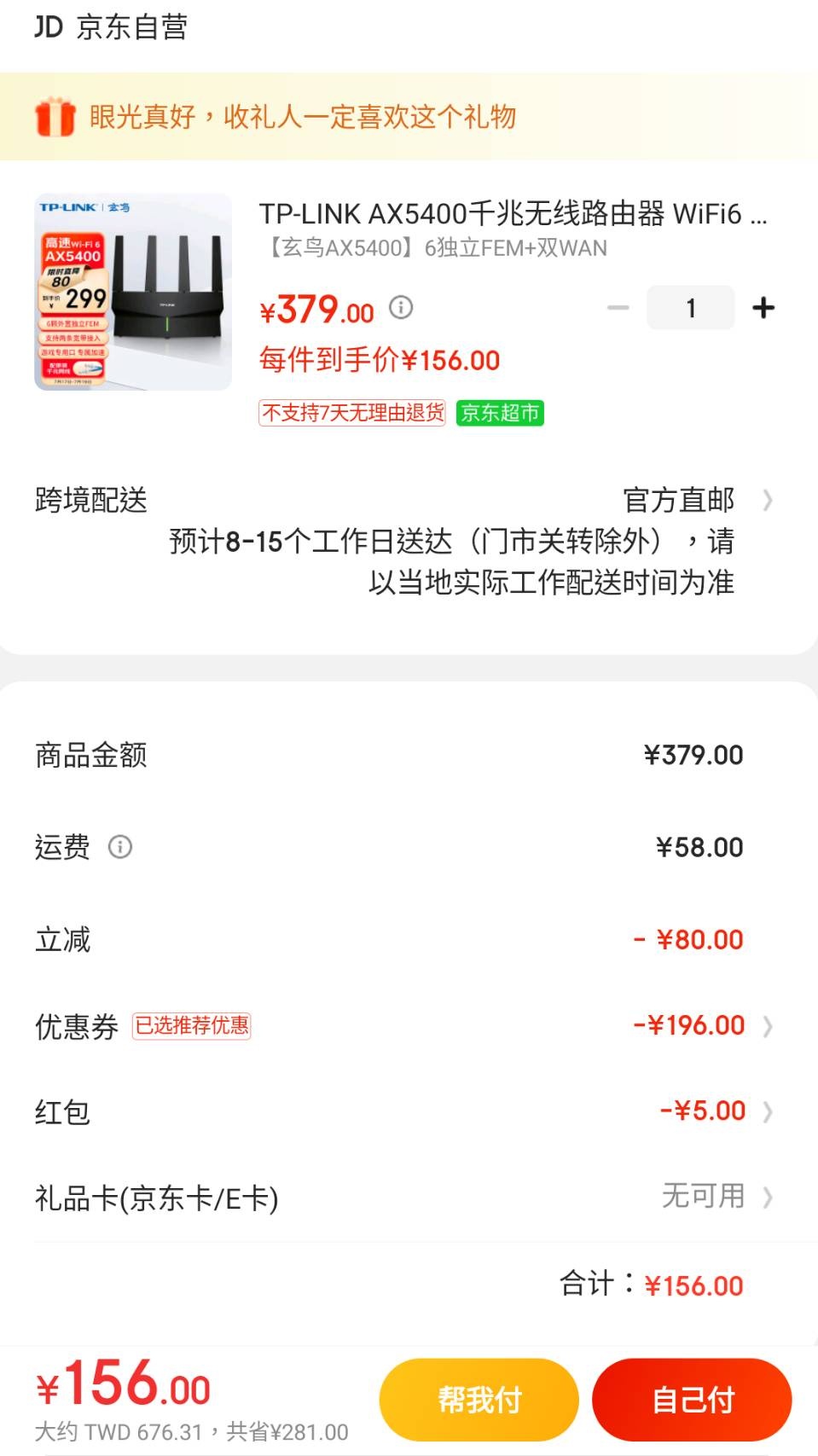 推 Dragula: 紅米AX6000 折後台幣1275 111.241.228.1 07/16 17:40