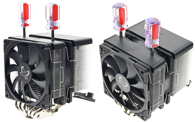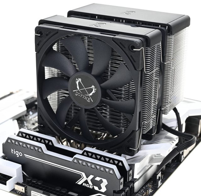 Scythe鎌刀SCFM-3000風魔3散熱器將雙12公分風扇雙塔CPU散熱器的高度壓在154mm,