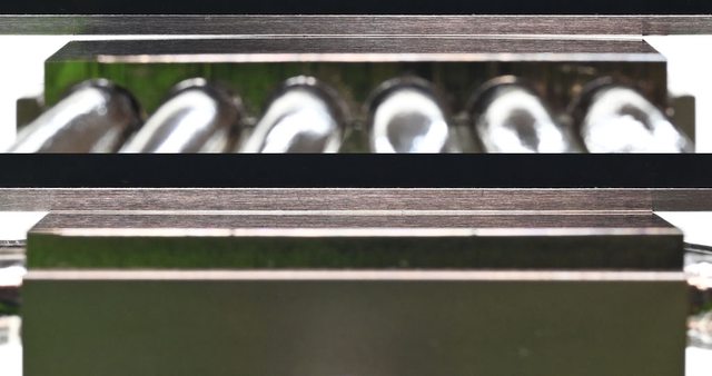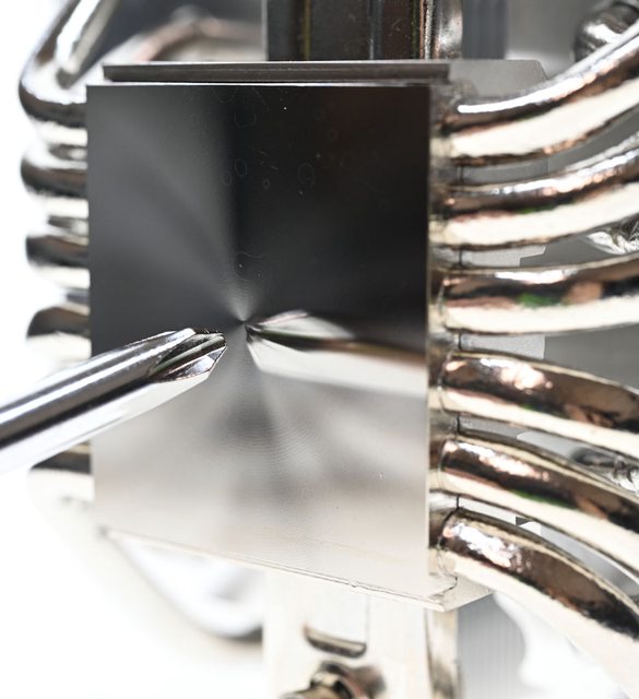 ▼前塔鰭片邊緣同樣具備交錯起伏設計,為了能鎖到下方壓板彈簧螺絲,多了2條凹槽