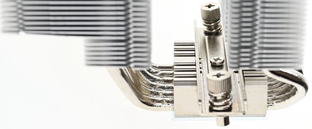 ▼散熱器本體採雙塔設計,底座左右各伸出6支熱導管,每個塔在6支直徑6mm熱導管上安