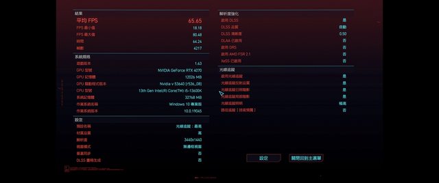 CYBERPUNK 2077 光追極高(平均) 65 最高 80