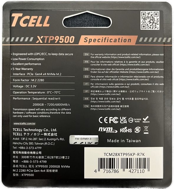 標題[開箱] TCELL XTP9500 2T M.2 PCIE Gen4