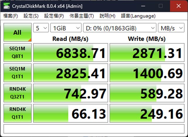簡單用 CrystalDiskMark 測一下讀寫