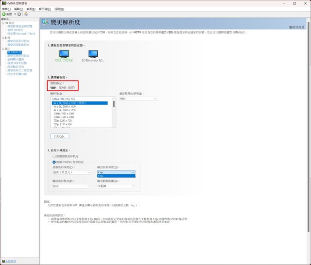 以DELL U3223QE螢幕搭RTX3070顯示卡測試,使用HDMI輸出時螢幕被辨認為HDTV,最高支