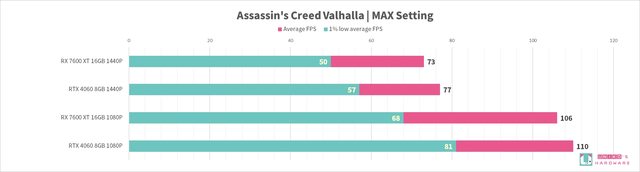 遊戲對於 VRAM 越來越更渴求,RX 7600 XT 16GB 有它的好處,遊戲流暢度 (1% LOW FPS)