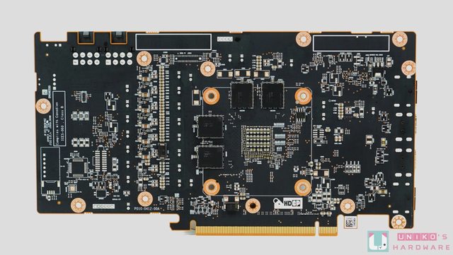 可惜有 4 顆 GDDR6 晶片被放在 PCB 背面,溫度很難降下來,廠商也只能利用金屬背板作