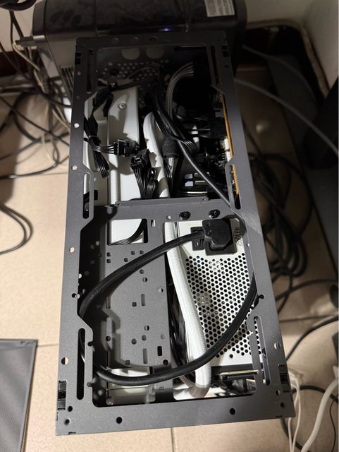因為我不想要風扇吃顯卡廢熱所以用的是風扇在外往內吹的方式,從上往內看也還有一些