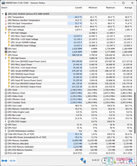 MIT 功耗限制,這與 TUF GAMING RTX 4080 維持一致。換句話說華碩還是有信心新的供電