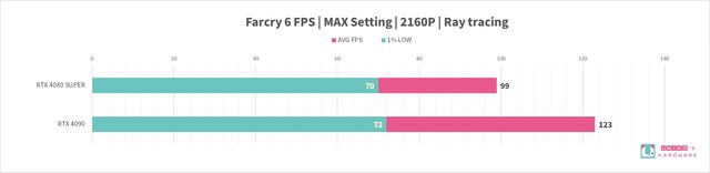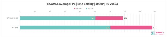 RTX 4080 SUPER 和 RTX 4090,8 組遊戲的 FPS 差異分別是:
