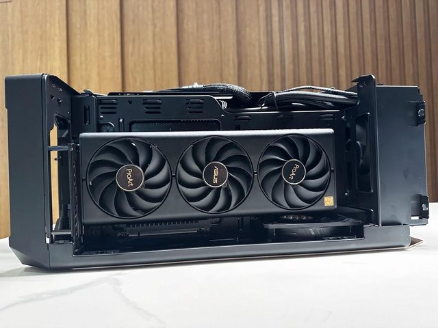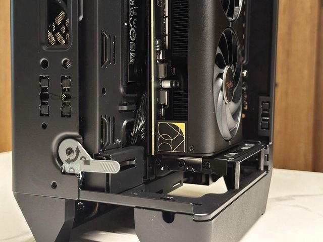 NCORE 100 MAX採用顯示卡IO口朝向下方的安裝方式。一般模式下能支援長度33.7cm、厚