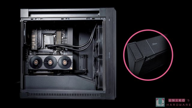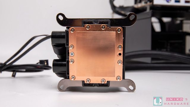 本體外觀 水冷頭有著方正的外型,尺寸是 78 x 78 x 49 mm,鋁製波浪造型上蓋增添視覺豐富度, 中間還有一條鍍鋁鏡面 LED 指示燈,可透過 Armoury Crate 軟體自定義燈效,左邊以金色 標示刻度及 ProArt Logo。水冷頭的下方有一條 4-pin PWM 風扇供電連接線,和一條 USB 2.0 9-pin 連接線。 高效能 3 相馬達幫浦提供穩定的散熱能力,轉速為 3,000 ± 10% RPM,運作也相當安靜 ,陶瓷油封軸承則帶來優異的耐磨性與耐溫性。底部方形大銅底採外凸設計,出廠時已預塗 散熱膏,內側為沒入式鰭片散熱板,能透過鰭片近距離接觸以提供更佳的熱傳導。 水冷排尺寸為 456 x 140 x 30 mm 加厚的鋁製冷排具有更大的水冷液儲存容量,進一步增 強散熱效能,450 mm 的編織網水冷管讓使用彈性與機殼相容性更佳。 https://i.imgur.com/NLqV1zt.jpg