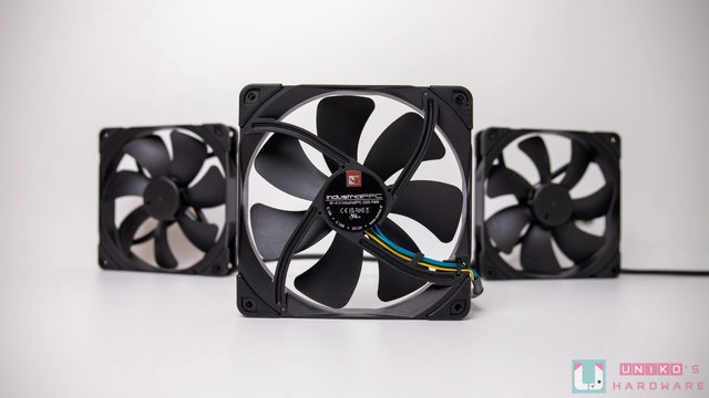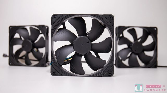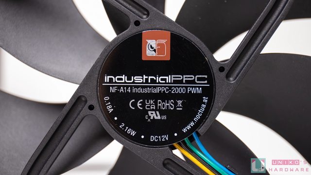 搭載 3 顆來自 Noctua (俗稱貓頭鷹) 的 NF-A14 industrialPPC-2000 PWM 風扇,尺寸為 140 x 140 x 25 mm,轉速高達 2000 RPM,能提供 4.18 mmH2O 的風壓、107 CFM 的 風量,噪音值為 31.5 dB(A)。 扇葉和扇框是由強化玻璃纖維聚酰胺 (Fibre-glass Reinforced Polyamide) 製成,正面 和背面四個角落都有黑色的矽膠防震墊,可減少運轉時的震動。 採用 3 相電機馬達、SSO 2 代軸承、還通過 IP52 防水和防塵級別認證,官方標示平均 故障間隔時間 (MTBF) 為 150,000 小時。 https://i.imgur.com/RTZ5IP4.jpg