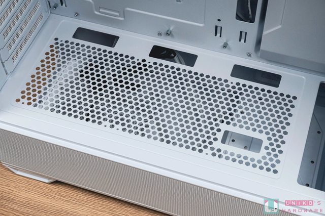 機殼頂部有附上磁吸式濾網,並提供最大 120 mm x 3 的散熱空間,可選擇安裝風扇或水