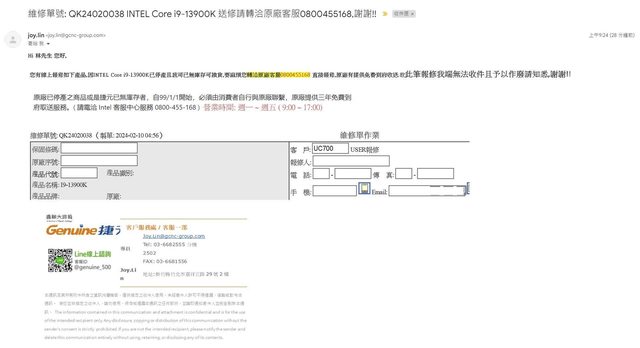 → intela03252: 乾脆直接建議你轉送原廠,快速方便114.33.155.28 02/15 10:30