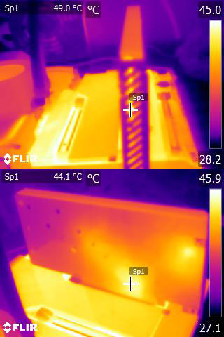 he 和使用時間等等。室溫 28 度下進行測試,測得待機溫度約在 37℃,負載下溫度約 5