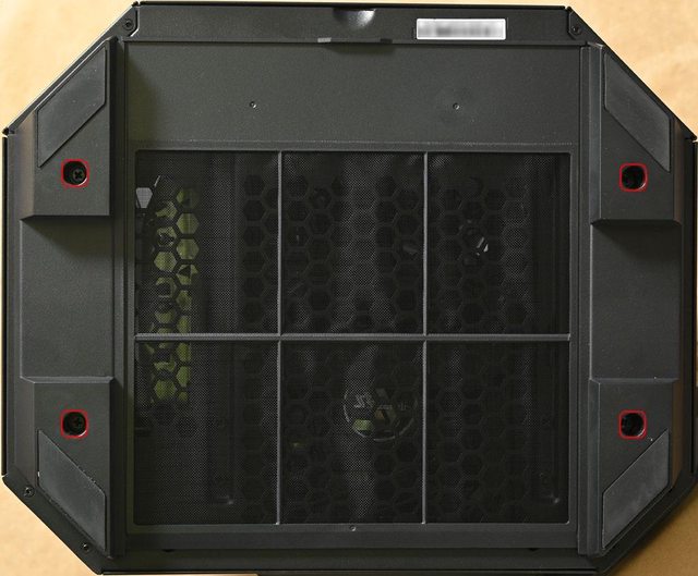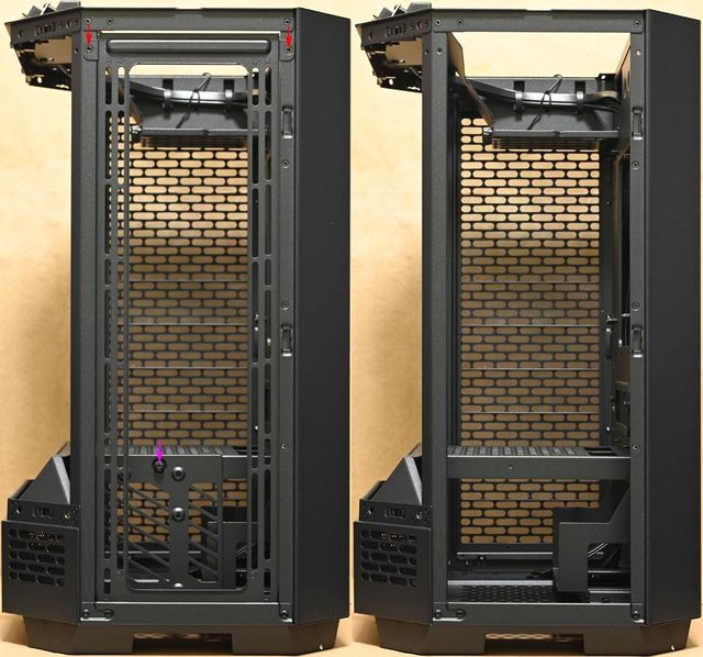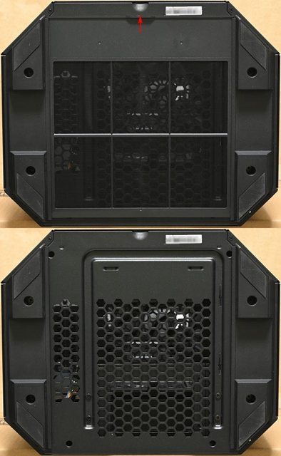 ▼取下機殼頂部風扇固定板後的內部圖,靠近後方處(圖片下方)設置2個穿線開口