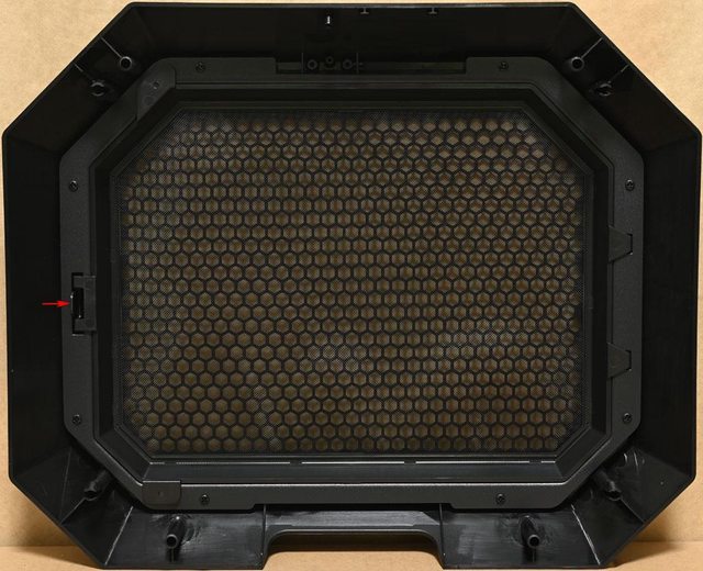 拉開,待兩側卡榫全部鬆脫後即可取下。通風口有磁吸式過濾網,左下方開口為電源供應