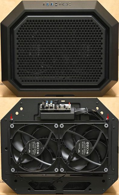 ▼頂部風扇固定板,預裝2個CT140風扇,從機殼內往上排氣