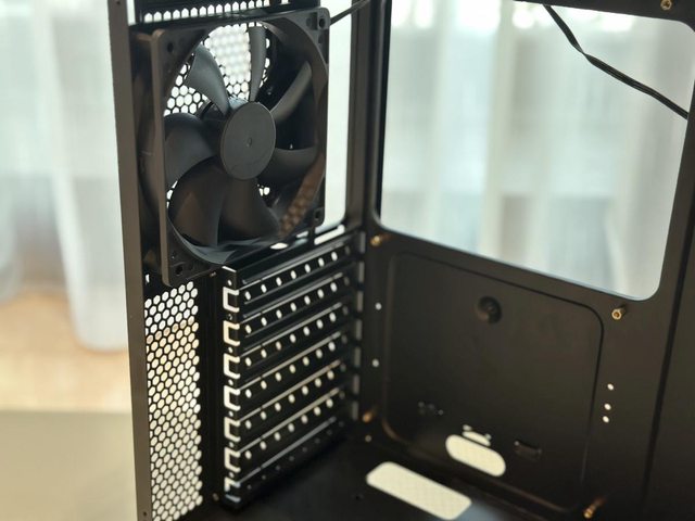 MX330-G Pro採用常見的下置電源、7個PCI-E槽位設計,後方排風扇為12cm規格且已預裝
