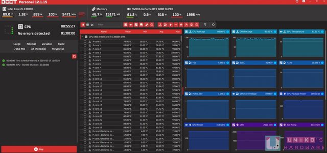 藉由 OCCT + FurMark 一小時穩定測試下,可將 CPU 和 GPU 兩者壓力拉至極限,測試期間