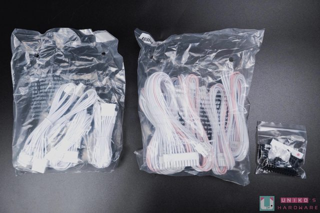 模組化線材在包裝內有稍作分類,主要是另將 SATA / Molex 大 4pin 獨立包裝,線材則以