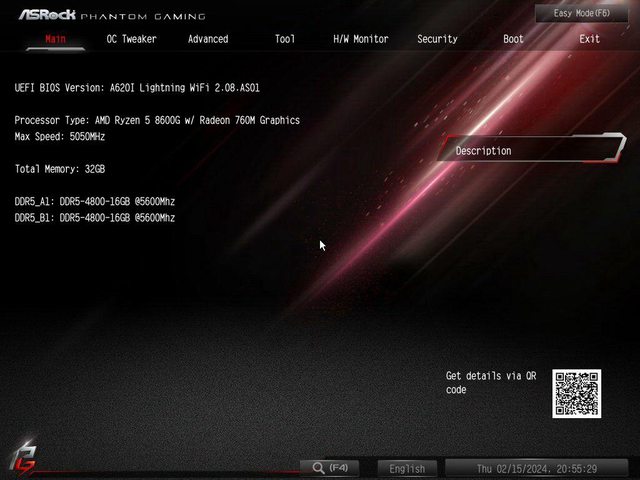 由於 8600G 代號是 Phoenix ,就把 BIOS 更新到最新的 2.08.AS01 版本。