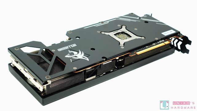 背板的高度明顯比 PCB 更高,POWERCOLOR 以散熱器填補多出的空間,增加散熱效能。