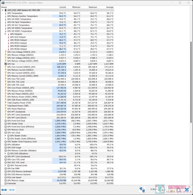 由於 HELLHOUND RX 7700 XT 同樣用上 20 Gbps 的 GDDR6 (僅 6 顆組成 12 GB),兩個型