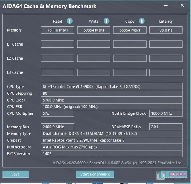 /s、寫入 69354 MB/s、複製 66354 MB/s、延遲 93.8 ns。