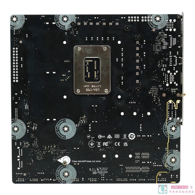 灰色明顯是主機板的主配色,在 PCB 背後的區域淨空 (螺絲孔) 也被改用灰色設計。