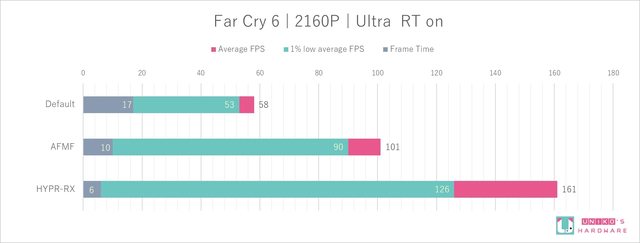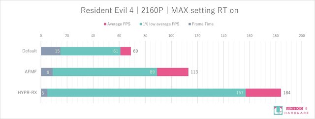 相比預設,開啟 AFMF 效能提升了 70.7 %,開啟 HYPR-RX 效能提升了 236.5 %。