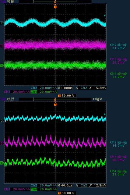 20mV/25.2mV/17.6mV,高頻漣波分別為13.2mV/23.2mV/17.2mV