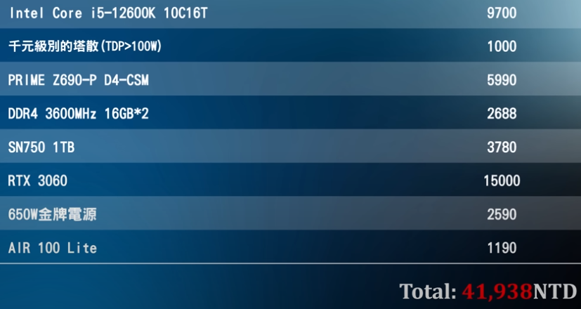 → laechan: 兩年前某YT的單,12600K,板子能選到Z板 59.126.145.135 03/13 14:30