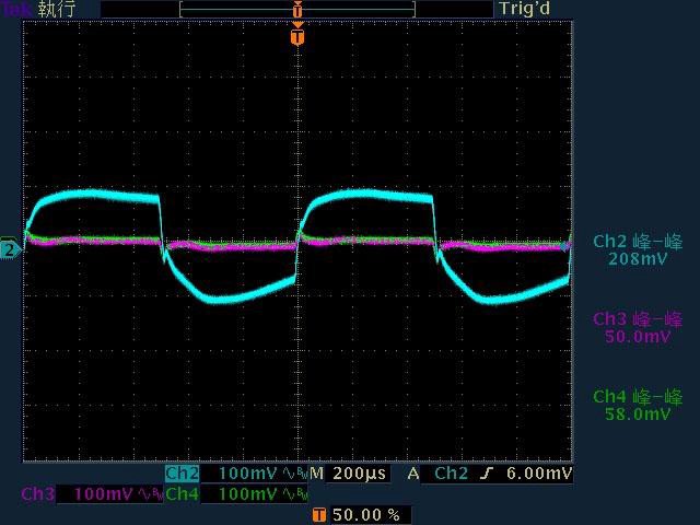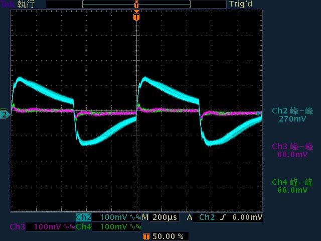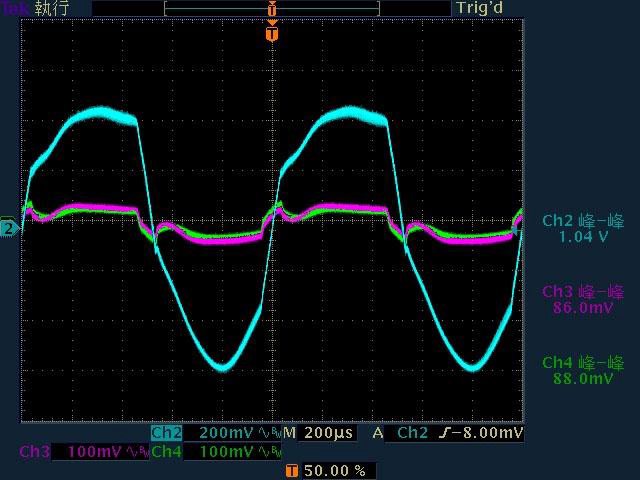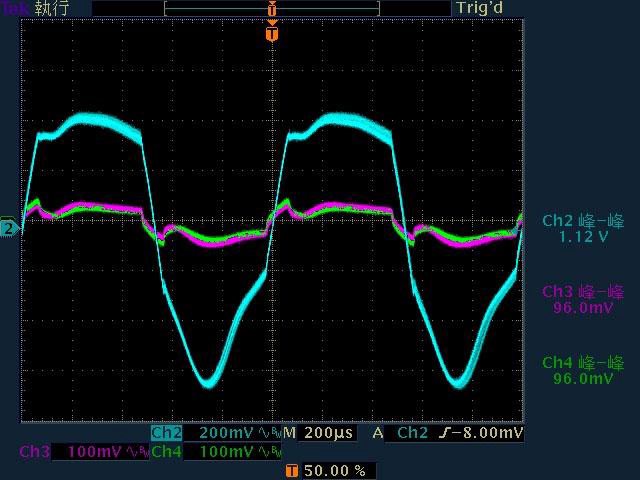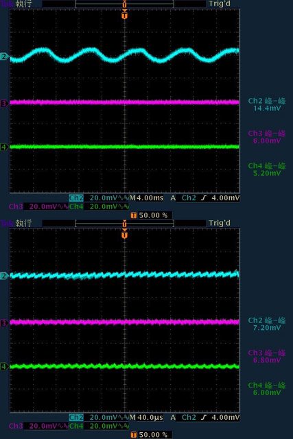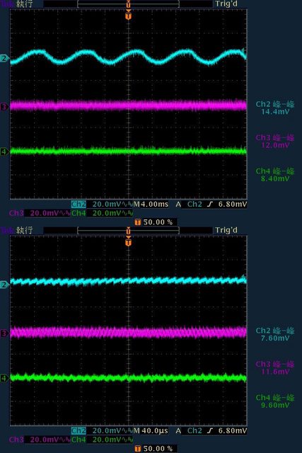 14.4mV/12mV/8.4mV,高頻漣波分別為7.6mV/11.6mV/9.6mV