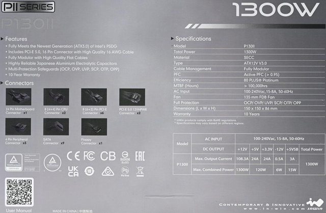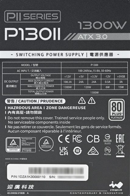 標題[開箱] Inwin P130II ATX 3.0 1300W白金全模電源