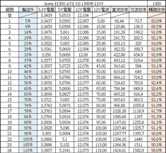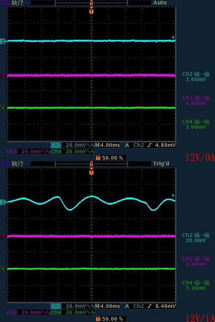 漣波。於綜合全負載輸出下12V/5V/3.3V各路低頻漣波分別為14.4mV/12mV/8.4mV;於純
