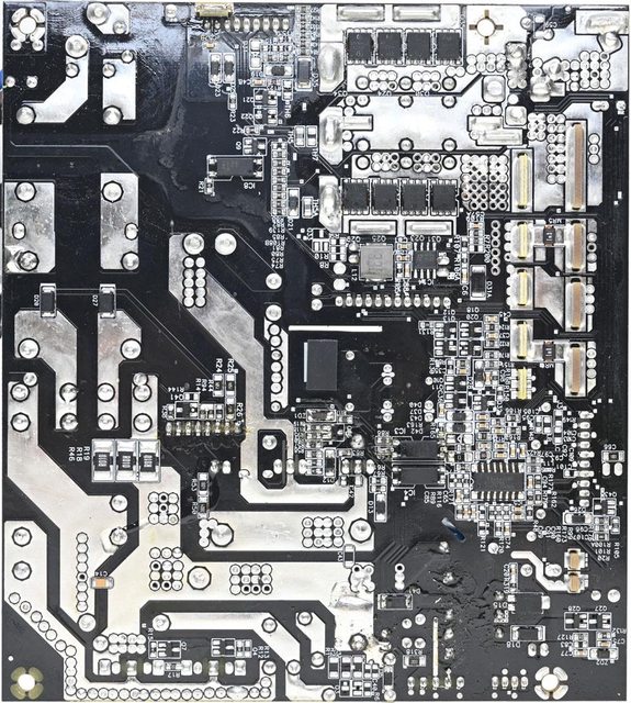 ▼主電路板背面焊點做工良好,大電流線路有敷錫
