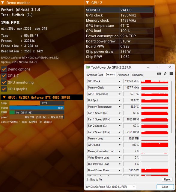 裝機後Furmark單烤顯卡測試,機殼是先馬大境界,顯卡風扇設定在60%(約1900-2100rpm