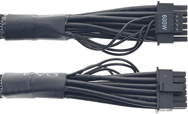 ▼1條12VHPWR黑色編織網包覆模組化線路,接頭標示600W,16/26AWG線路長度60公分