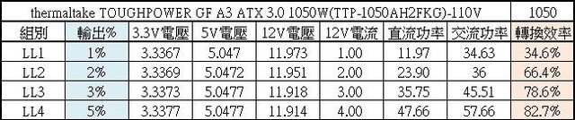 ○偏載測試,12V維持空載,測試3.3V滿載、5V滿載、3.3V/5V滿載的3.3V/5V/12V電壓變
