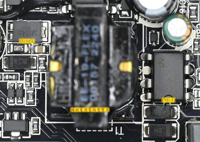 ▼主電路板背面焊點做工良好,大電流線路有敷錫,於部分二次側區域加裝金屬板